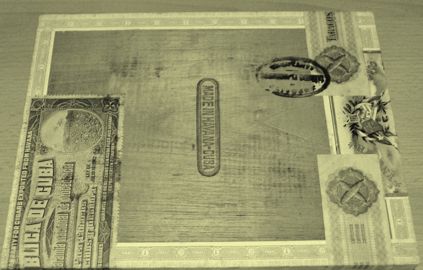 Hier zu sehen ist eine Aufnahme der Rückseite einer VERSIEGELTEN Pre Castro (und damit auch Pre Embargo) Zigarrenkiste. Die Marke und der Hintergrund dieser Kiste dürfte dem Großteil der Zigarrenliebhaber unbekannt sein. Genau an dem Punkt setzt mein kleines Projekt auf. Mir wurde die große Ehre zuteil, dass mir diese Kiste inkl. Inhalt von einem Zigarrensammler aus Hong Kong zur "Recherche" anvertraut wurde.